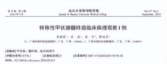 参考资料[1] 李超霞.转移性甲状腺髓样癌临床病理观察1例,汕头大学医学院学报,2024-09-30
